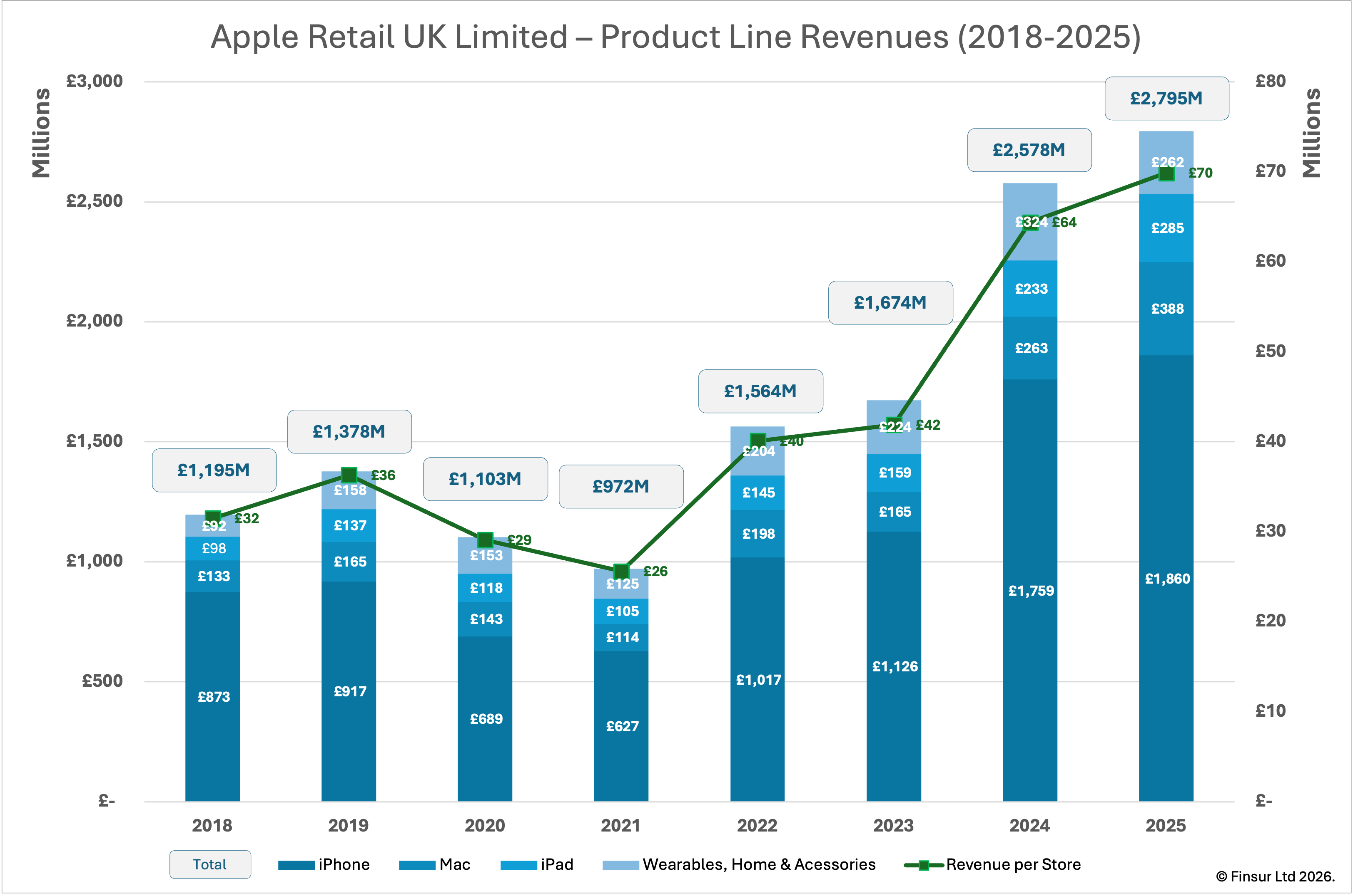 Last year's Apple Retail UK analysis confirmed what the consumer surveys had been suggesting: the telcos were losing their grip on device sales. Since then, the evidence has only strengthened with the Telco Equipment Revenues1 report documenting notable declines across European operators whilst consumer direct purchase rates continued climbing. So, with Apple Retail UK Limited (04996702) filing another year of results last week, and the channel displacement story now looking structural rather than cyclical, it seemed worth revisiting the UK retail entity for FY2025 up to 27/09/2025. Let’s dive in…