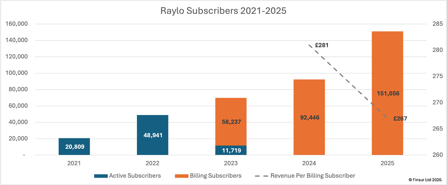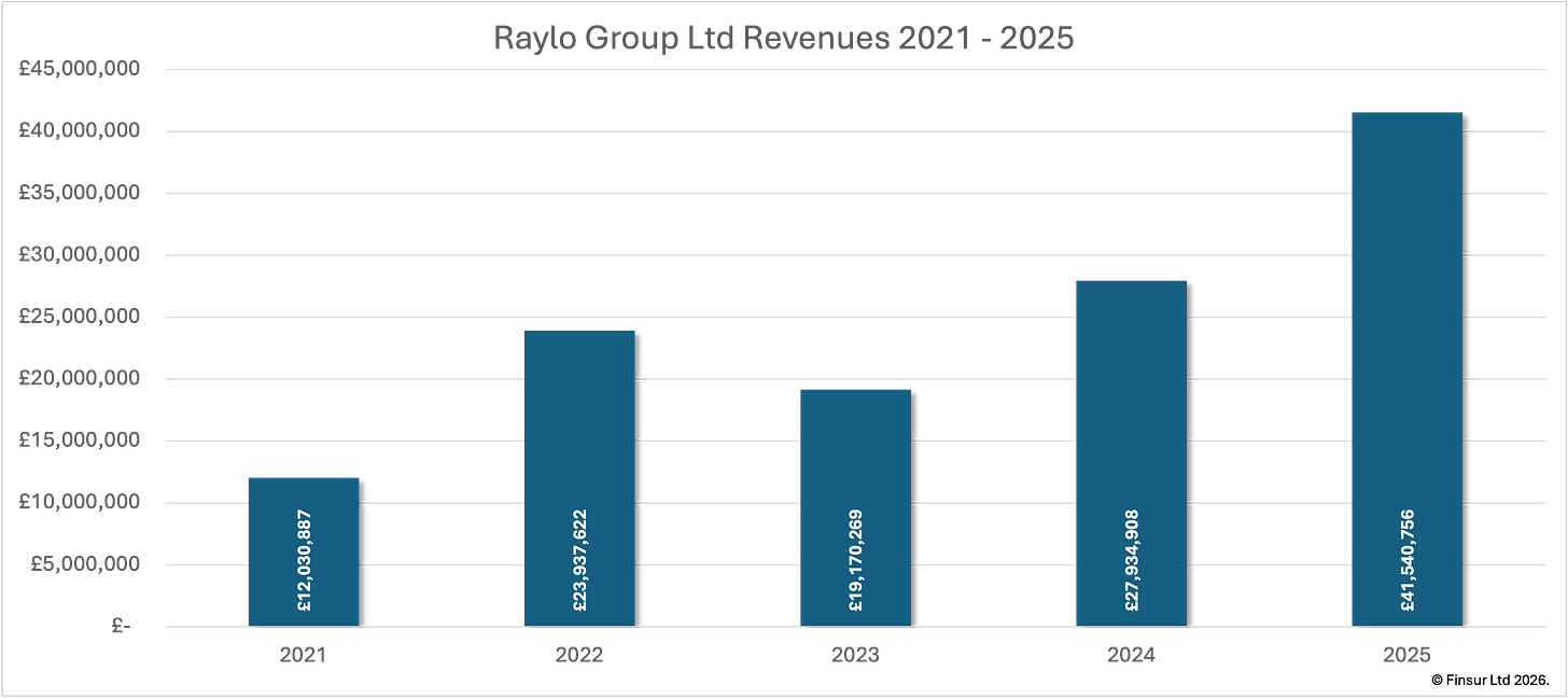 In a particularly English turn of events, I’ve noticed myself saluting ever more magpies over the last few years. To anyone less superstitious, the sight of me shuffling along the local trails witnessing a raised hand to brow without a receiving officer anywhere to be seen, is odd, possibly. But superstition aside, the reason behind my increasingly frequent martial tick is entirely related to an increase in annual mileage combined with an increase in the magpie population, which has been on a distinctly upward trend since 20161. To coin a favourite phrase, the harder I practice, the luckier I get. After Raylo’s 2025 accounts dropped last week, it appears management subscribe to a similar code of practice.