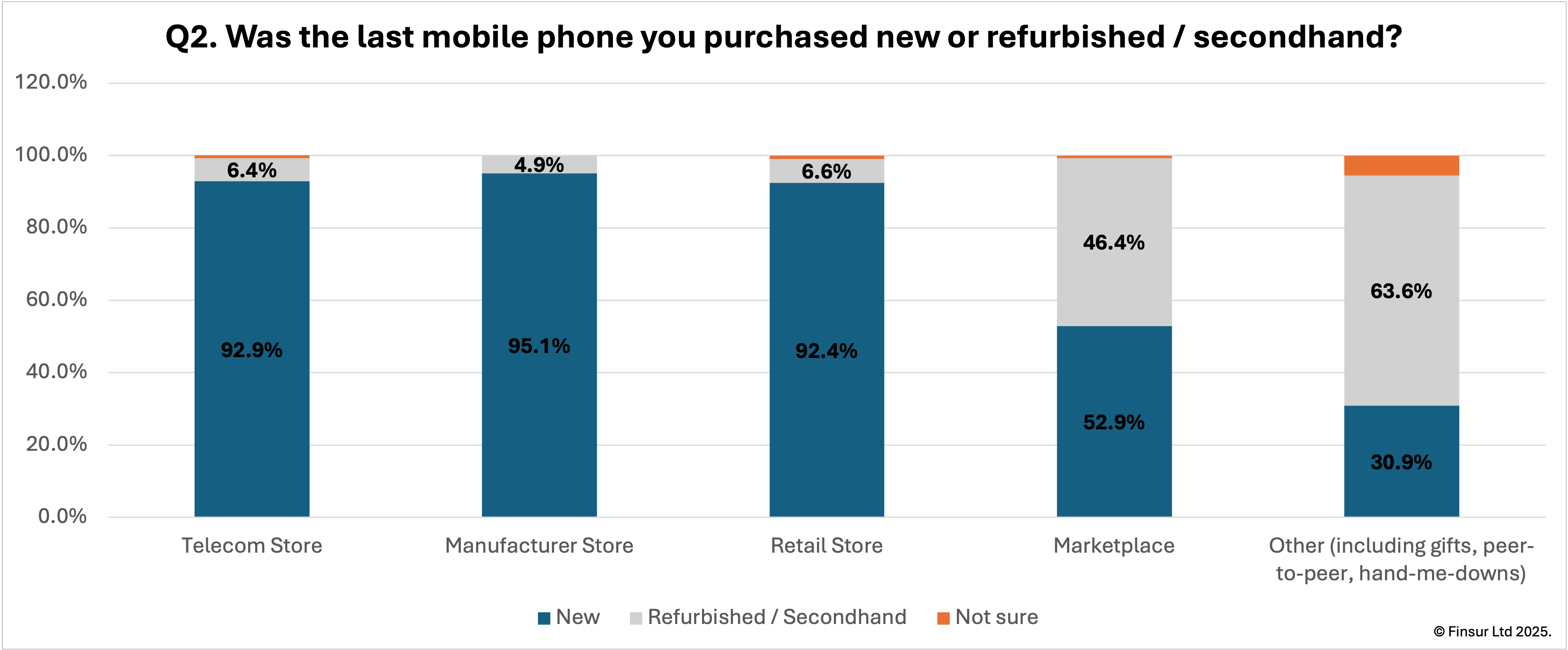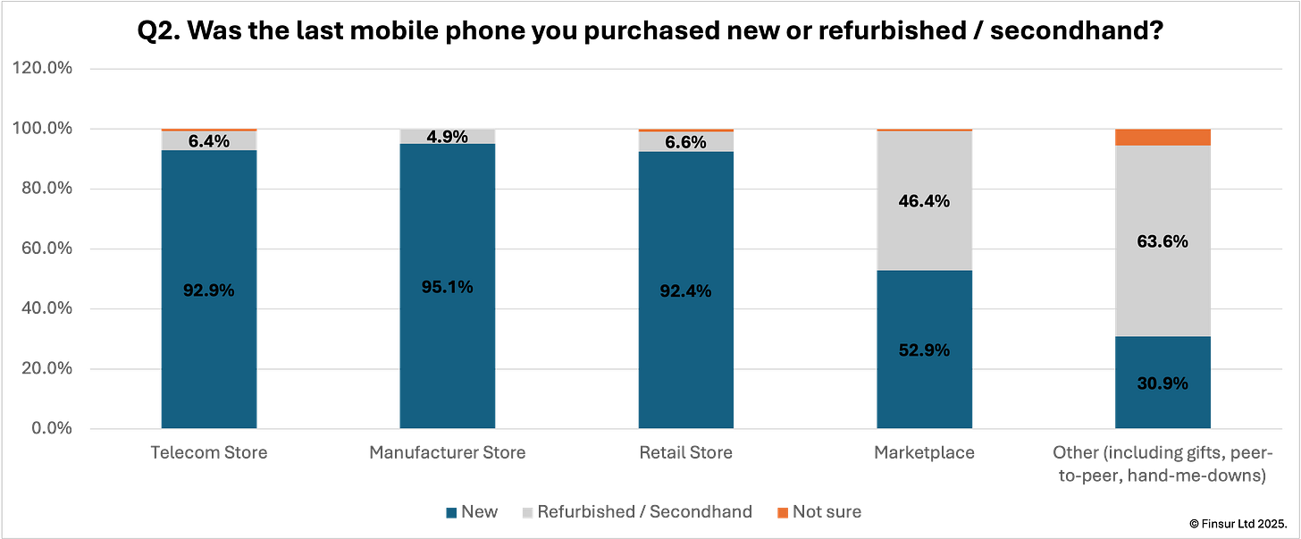 As a footnote, the survey also provided a little insight into the unorganised secondary market with 2.8% of device acquisitions being gifts or hand-me-downs from family members with 0.4% of phones purchased directly from friends. This would take the refurbed / secondhand purchases from 15.4% in the organised market to a total market share of 18.6%.